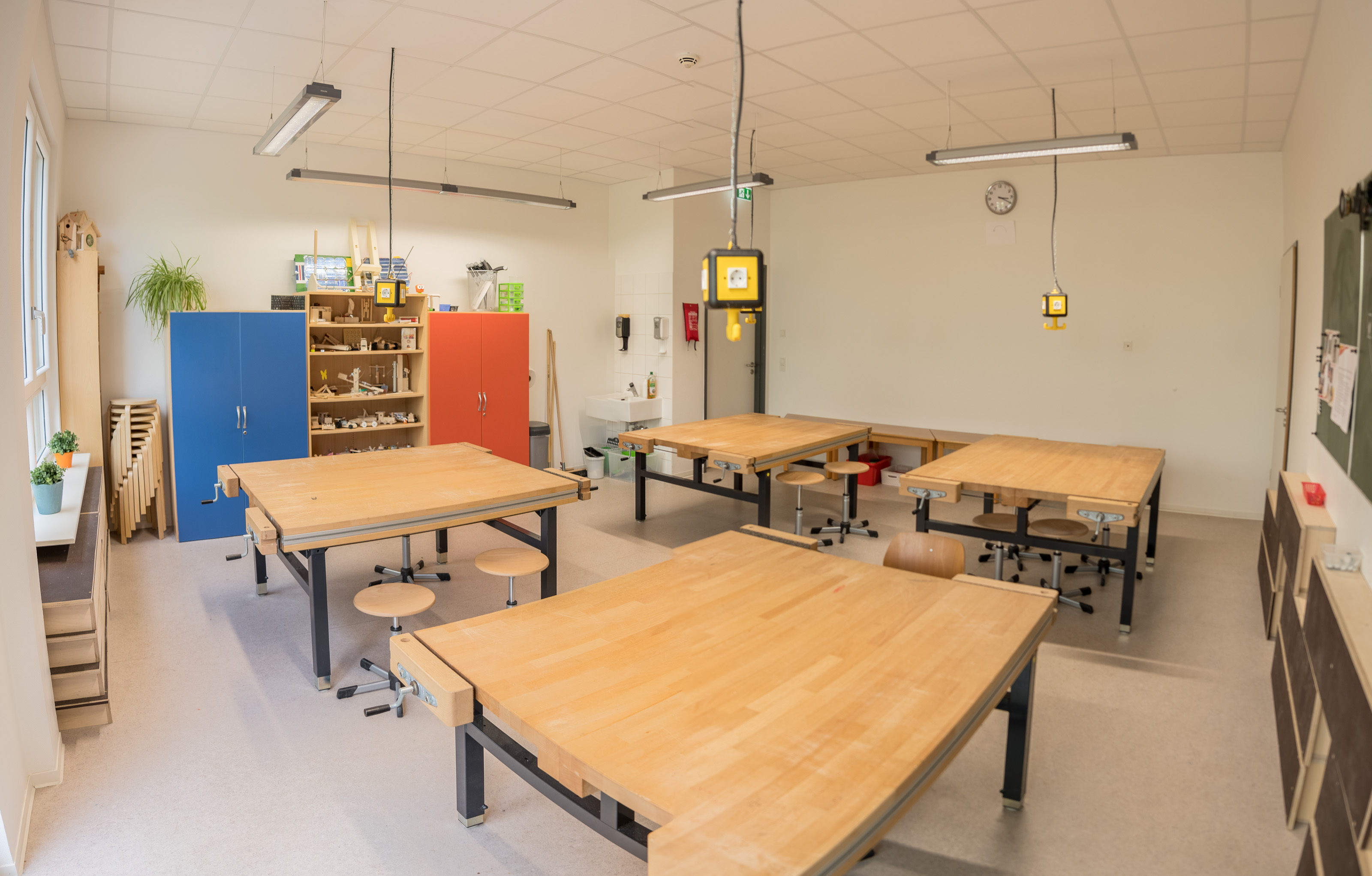 Mir bauen eis eng flott Luucht fir op de Bureau oder bei d'Bett ze stellen. No engem Plang seeë mir déi verschidden Eenzelstécker eraus, schläifen se, sträichen se un a bauen se zesummen.